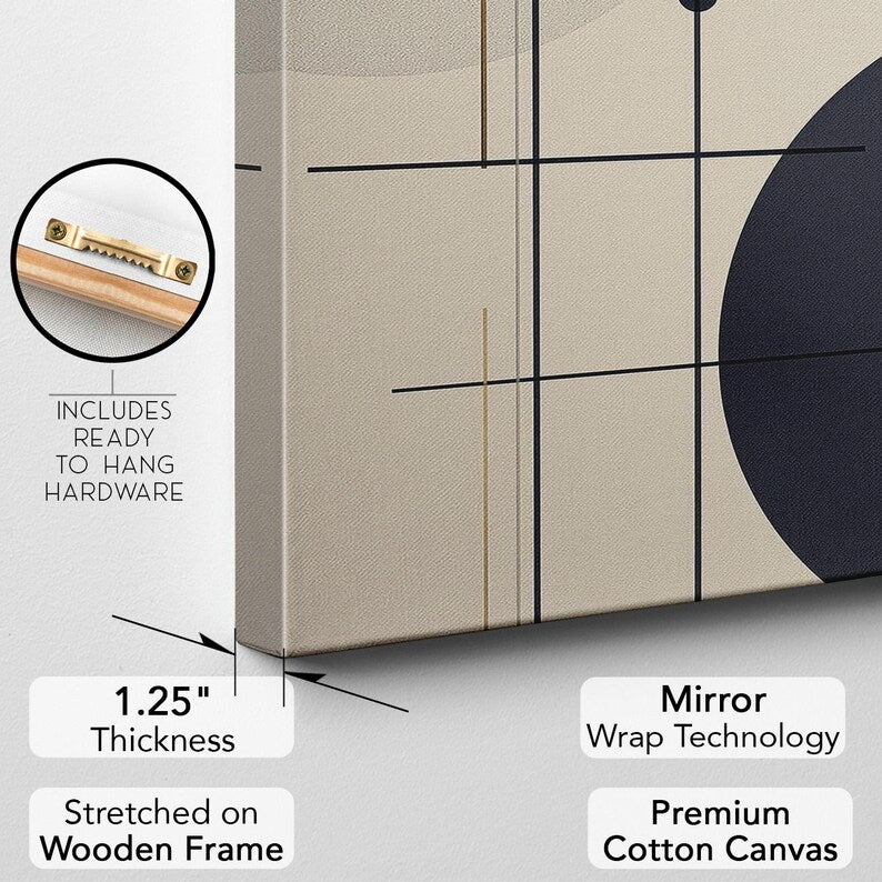 Abstract Geometric Art Canvas Print | Modern Circle Line Wall Decor | Neutral Gold Blue Minimalist Home Decor