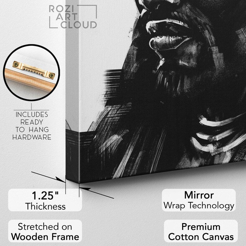 African man portrait illustration, black and white art prints, painting on canvas, man cave decor, modern wall art for living room