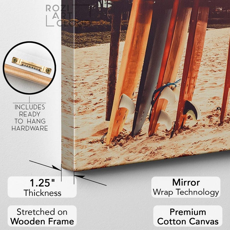 Beach wall art, surf art print, golden sun wall decor, summer modern artwork, landscape art canvas, large wall art for living room