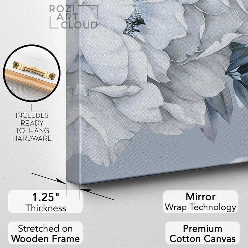 Blue and white floral wall art, botanical art prints, artwork for living room, flowers poster prints, large modern art, home gifts