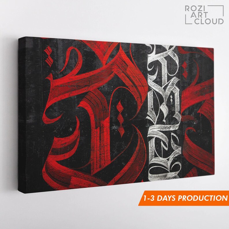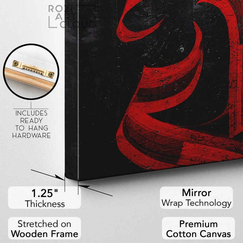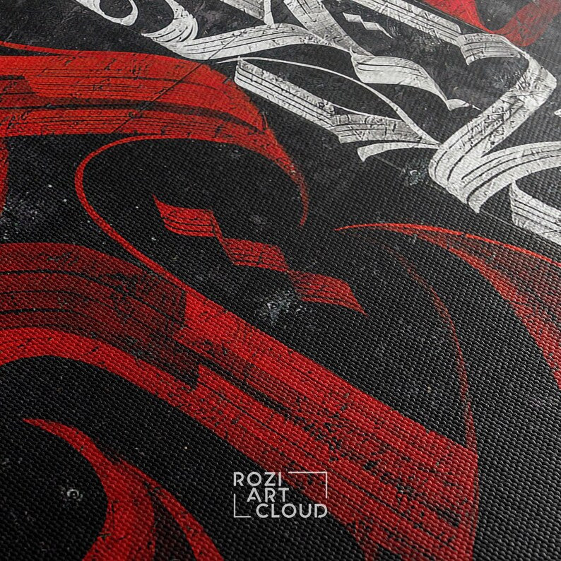 Calligraphy red abstract wall art, luxury office interior, contemporary poster, oversized wall art roziartcloud