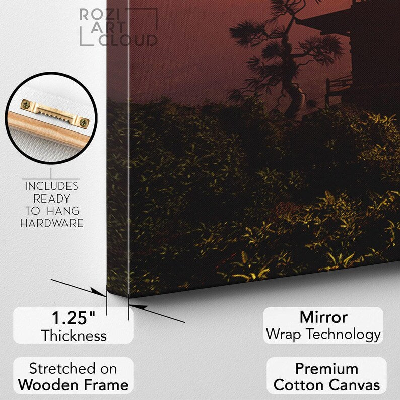 Chinese house wall decor, nature art print, mountain wall art, orange landscape canvas, contemporary living room decor, sunset art