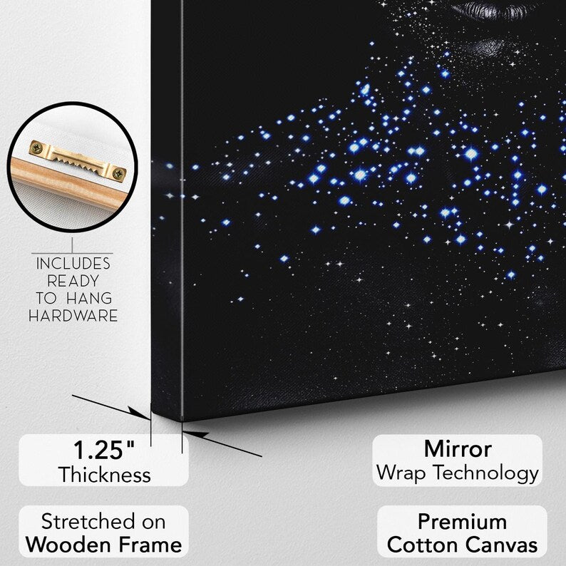Cosmic Man Wall Art | Galaxy Body Paint Canvas Print | Striking Blue Eyes Art | Modern Fantasy Decor
