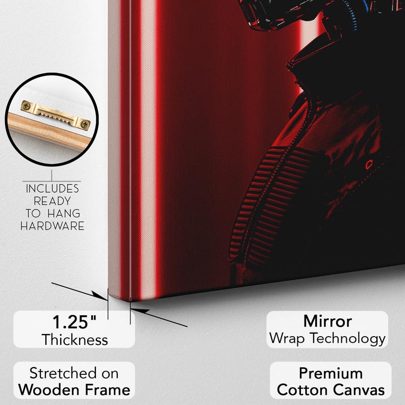 Cyberpunk Robot Wall Art, Futuristic Sci-Fi Canvas Print, Dark Red and Black Man Cave Decor, Gamer Room Art
