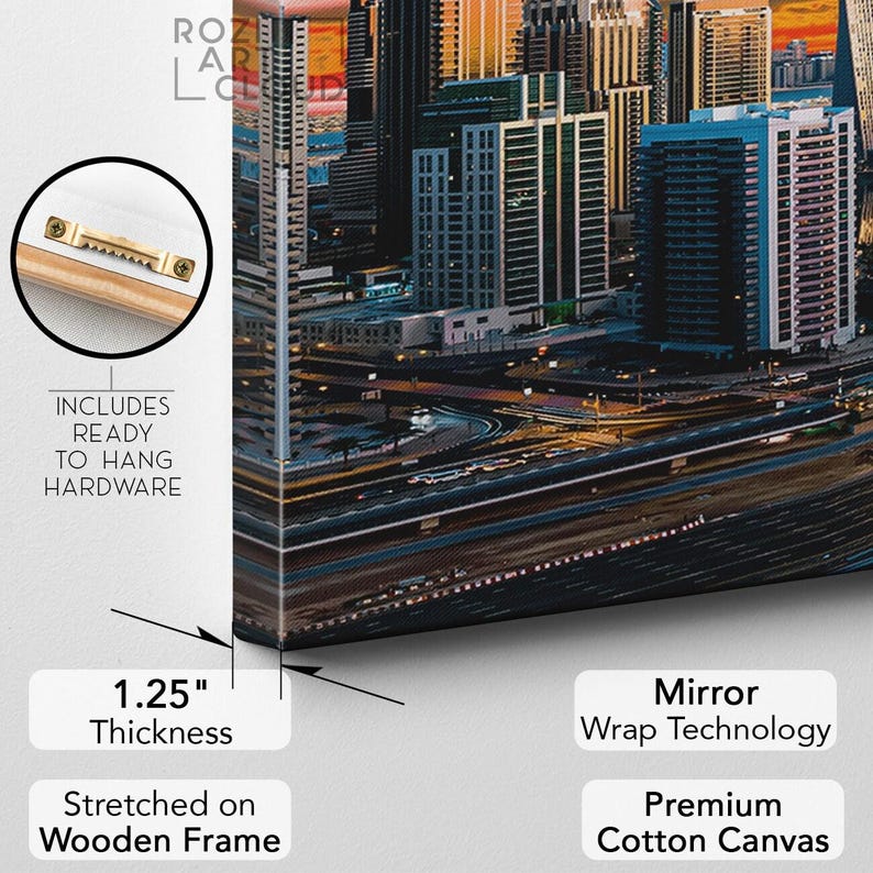 Dubai skyline wall print for living room, emirates canvas art, city poster prints, colorful sunset canvas, landscape prints