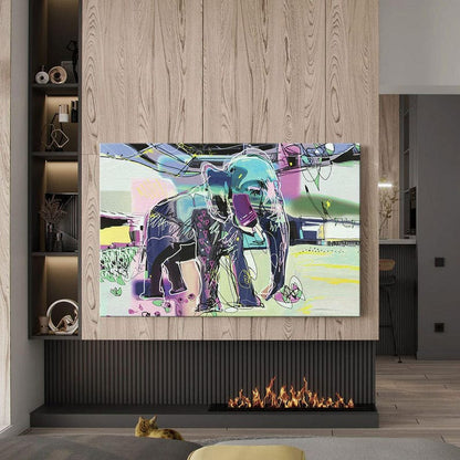 Elephant abstract wall art, graffiti art prints, large modern art, colorful canvas prints, wall decor living room, best friend gifts