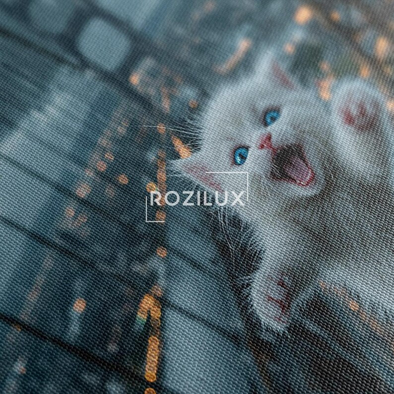 Epic Funny Jumping Cat Canvas Print | Surreal Flying Kitten Wall Art | City Bridge View Home Decor