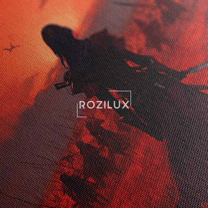 Fantasy Warrior Battle Scene Canvas Print | Epic Red Sky Dark Art Wall Decor for Game Room or Office