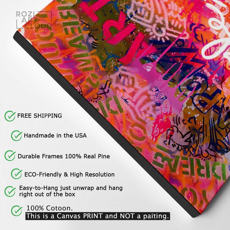 Graffiti art for home, life is beautiful quote decor, graffiti wall canvas, modern office interior, street art print