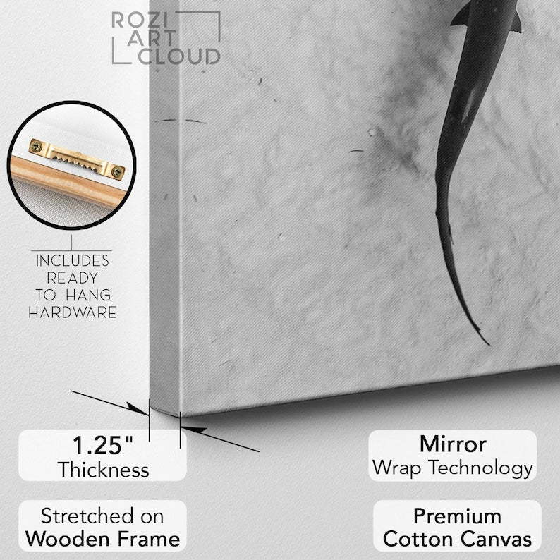 Hammerhead shark art prints, ocean canvas art, fish poster print, black and white canvas, large modern art, wall decor living room