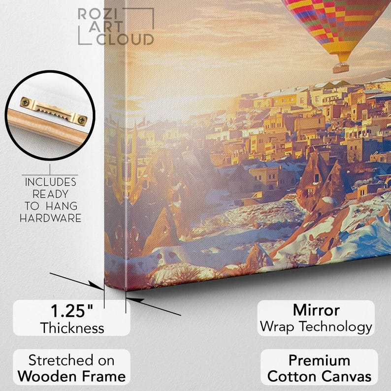Hot air balloon wall art, sunset art print, large architecture canvas, turkey art prints, bedroom framed art