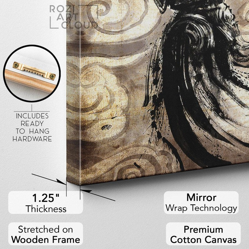 Japanese samurai girl, katana art prints, red and black illustration, vintage canvas art, modern wall art for living room