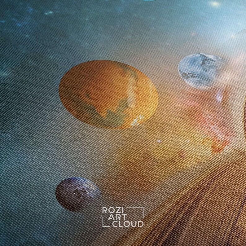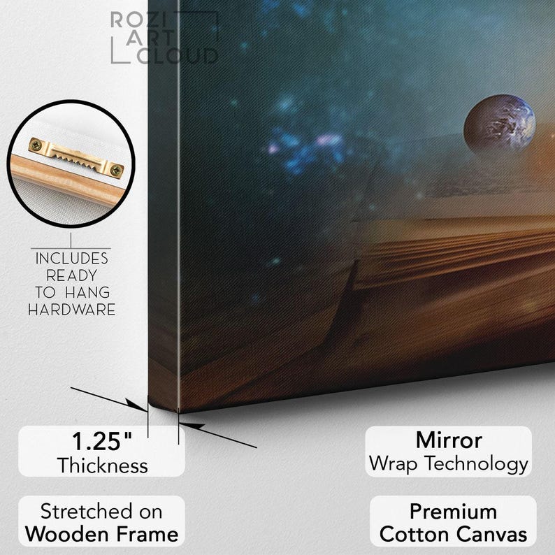 Knowledge magic book wall art, ready book lover space large wall art for living room, galaxy canvas prints, stars artwork
