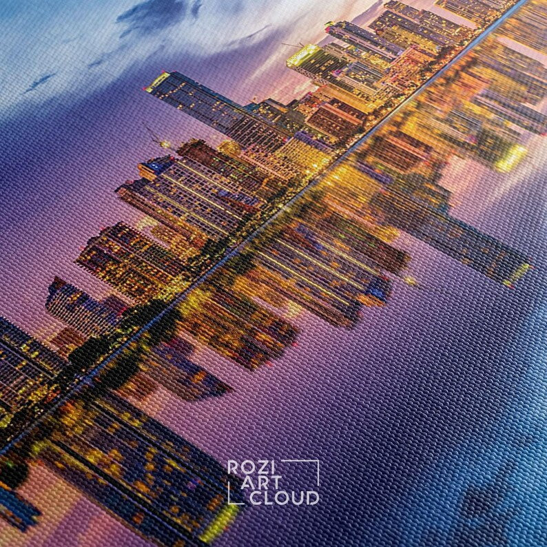 Miami florida skyline wall art, travel poster decor, panoramic canvas print, sunset view art, miami canvas art, florida wall art