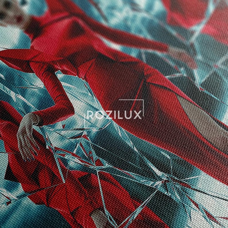 Modern Fashion Wall Art, Red Dress Broken Mirror Print, Elegant Woman Canvas Art, Luxury Decor for Living Room