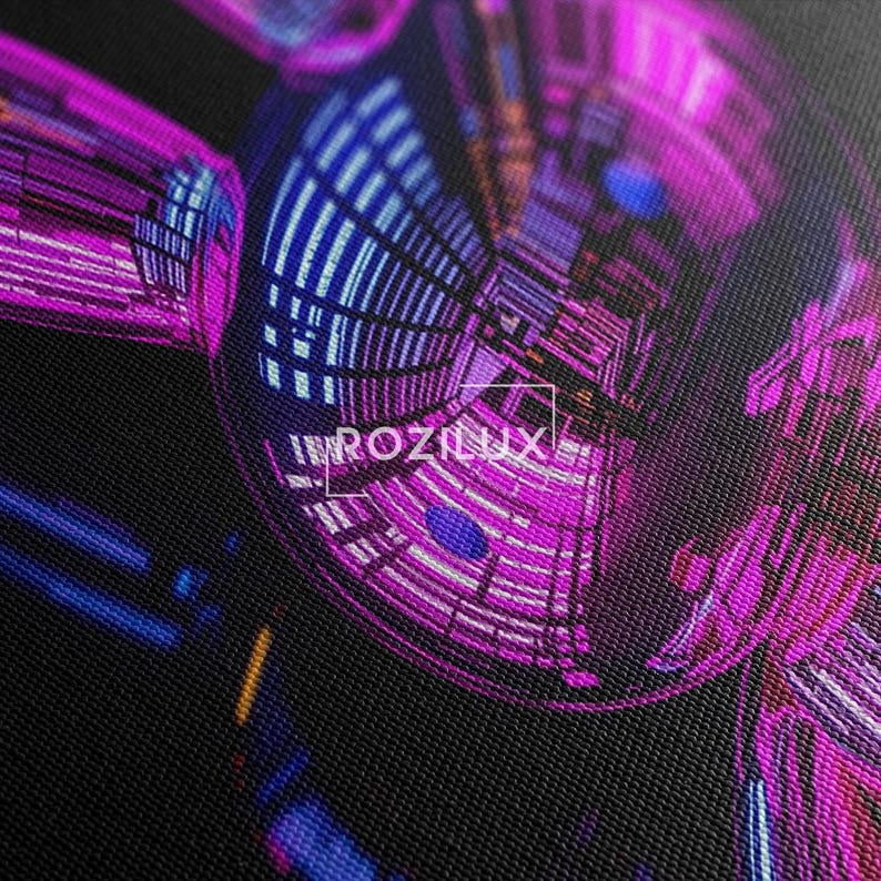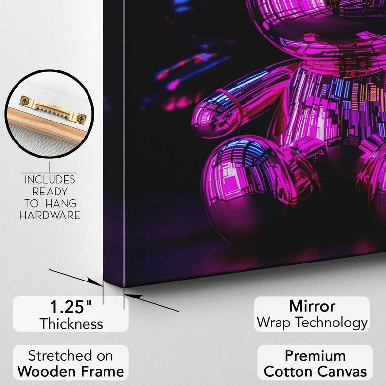 Modern Metallic Rabbit Sculpture Canvas Print | Futuristic Pink Blue Bunny Wall Art | Contemporary Pop Art Home Decor