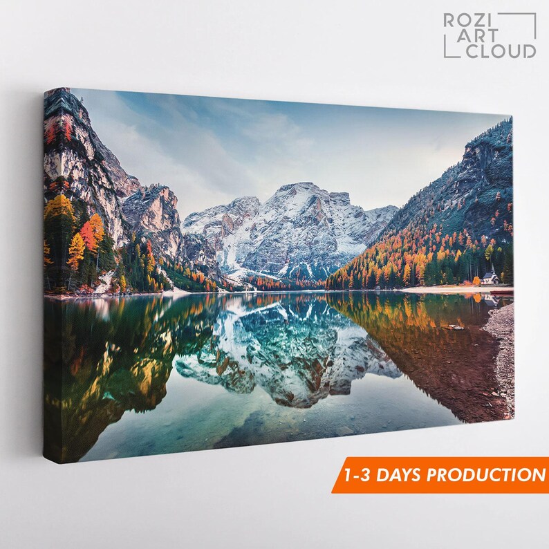 Mountain autumn wall decor, italy nature art prints, lake house decor, bedroom framed art, modern contemporary living room decor
