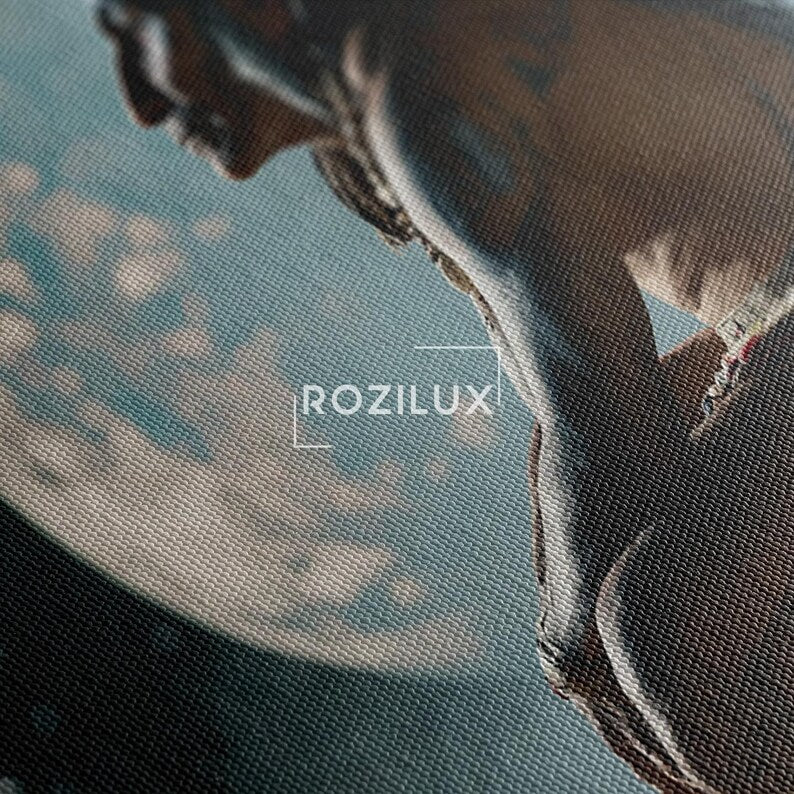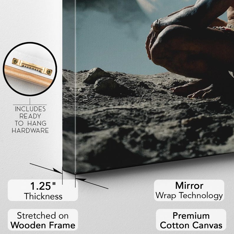 Native American Man Moon Stars Canvas Print, Spiritual Indigenous Wall Art, Cosmic Tribal Home Decor, Unique Fantasy Art Print