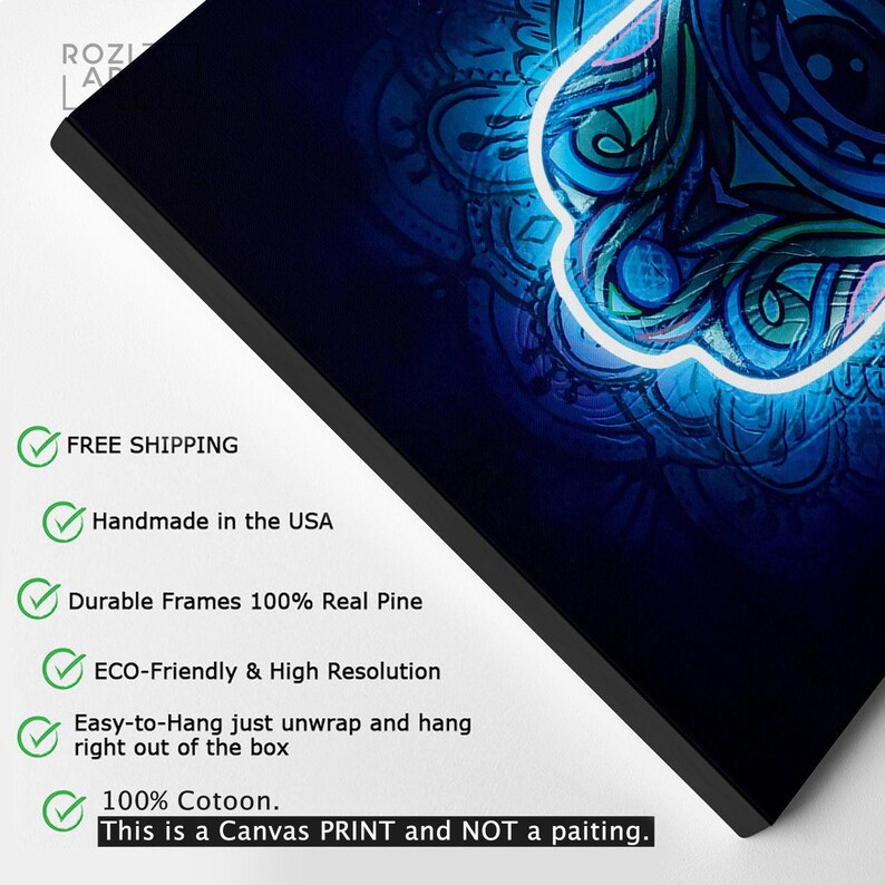 Neon sign hamsa wall art poster print, extra large spiritual decor, abstract blue lights prints, modern home decor