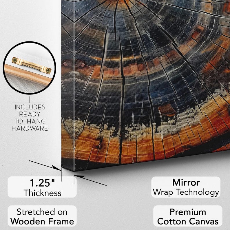 Petrified Wood Tree Ring Canvas Print, Abstract Nature Wall Art, Unique Wood Grain Art Print, Colorful Rustic Home Decor Boho