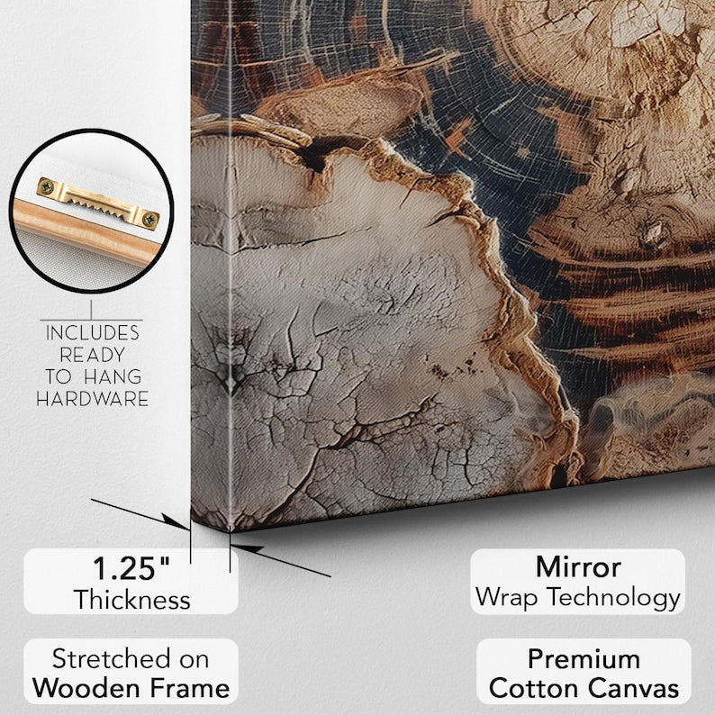Petrified Wood Tree Ring Canvas Print, Abstract Wood Wall Art, Modern Nature Decor, Earth Tone Organic Art Boho