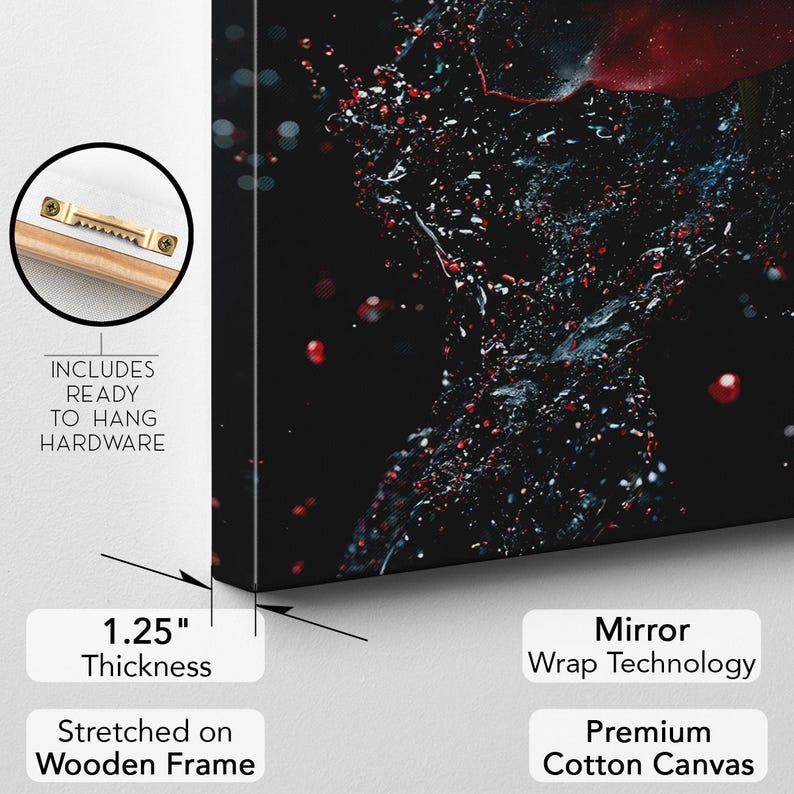 Red Rose Water Splash Canvas Print | Dramatic Dark Floral Wall Art | Romantic Bedroom Home Decor Gift