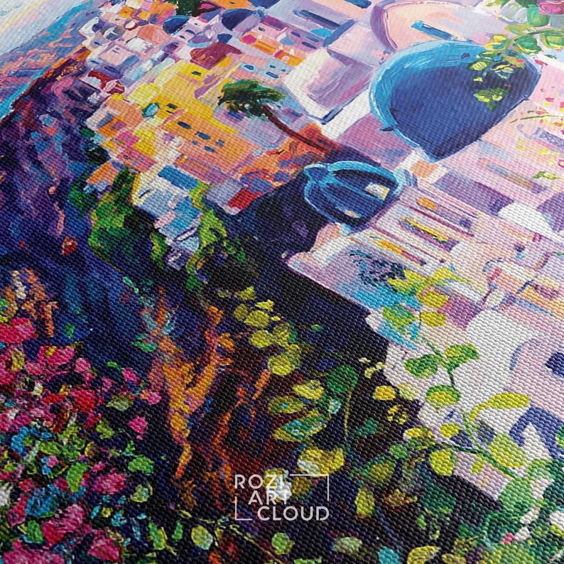 Santorini wall art, painting on canvas, greece modern wall art for living room, contemporary canvas, luxury wall prints, home gift