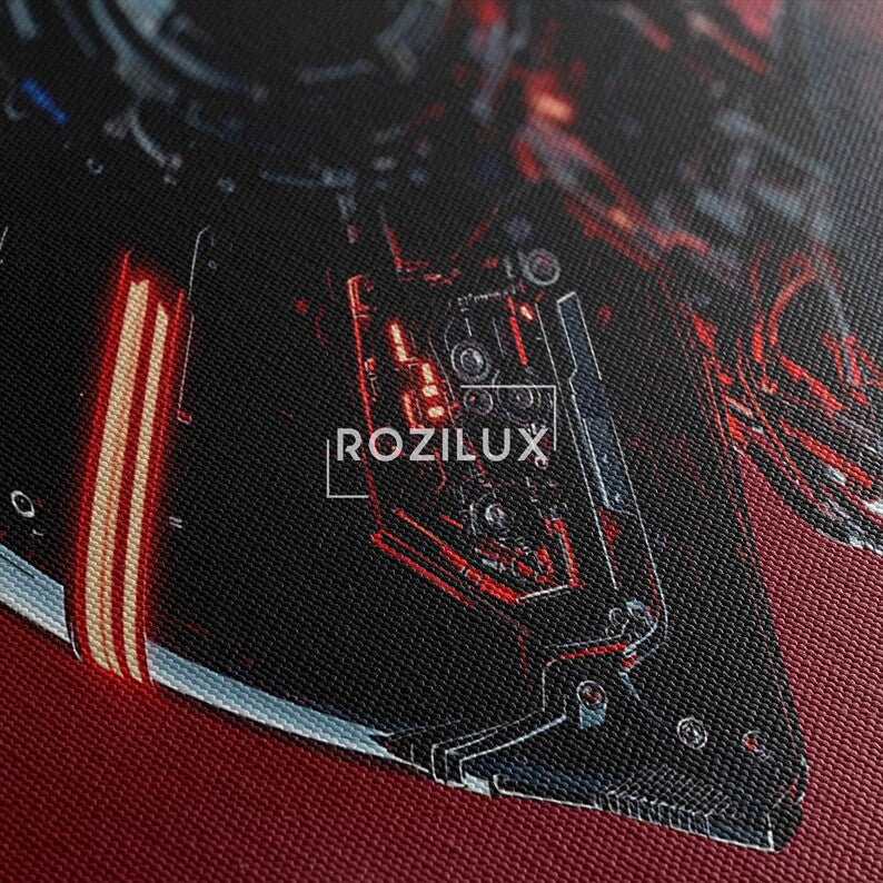 Sci-Fi Robot Canvas Print, Futuristic Cyberpunk Wall Art, Red and Black AI Decor Print, Modern Home Decor