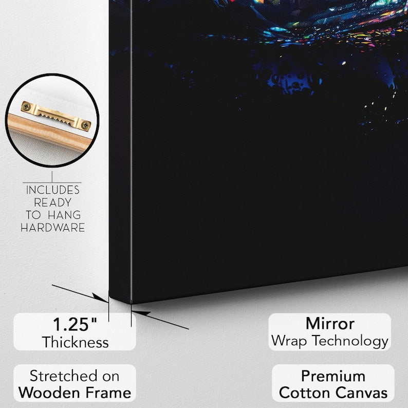 Surreal Iridescent Pill Lips Canvas Print, Futuristic Dark Art Wall Decor, Unique Modern Home Decor