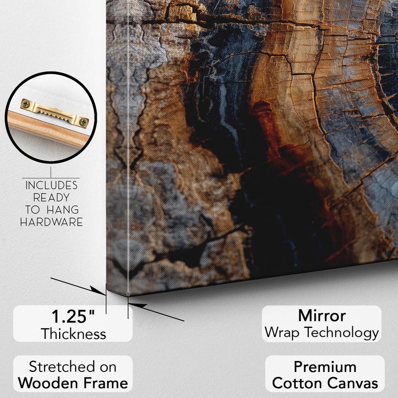 Tree Ring Abstract Canvas Print, Natural Wood Grain Wall Art, Modern Rustic Earthy Home Decor Boho