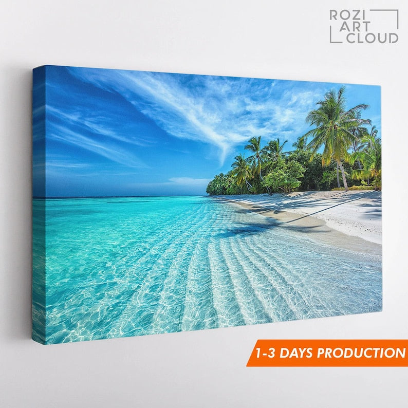 Tropical beach wall art, palm tree art prints, coastal decor, modern art prints, ocean art canvas, friend gifts