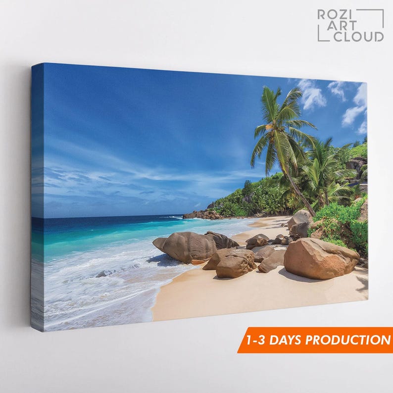 Tropical beach wall art, palm tree art prints, summer vacation canvas, modern artwork prints, large wall art for living room