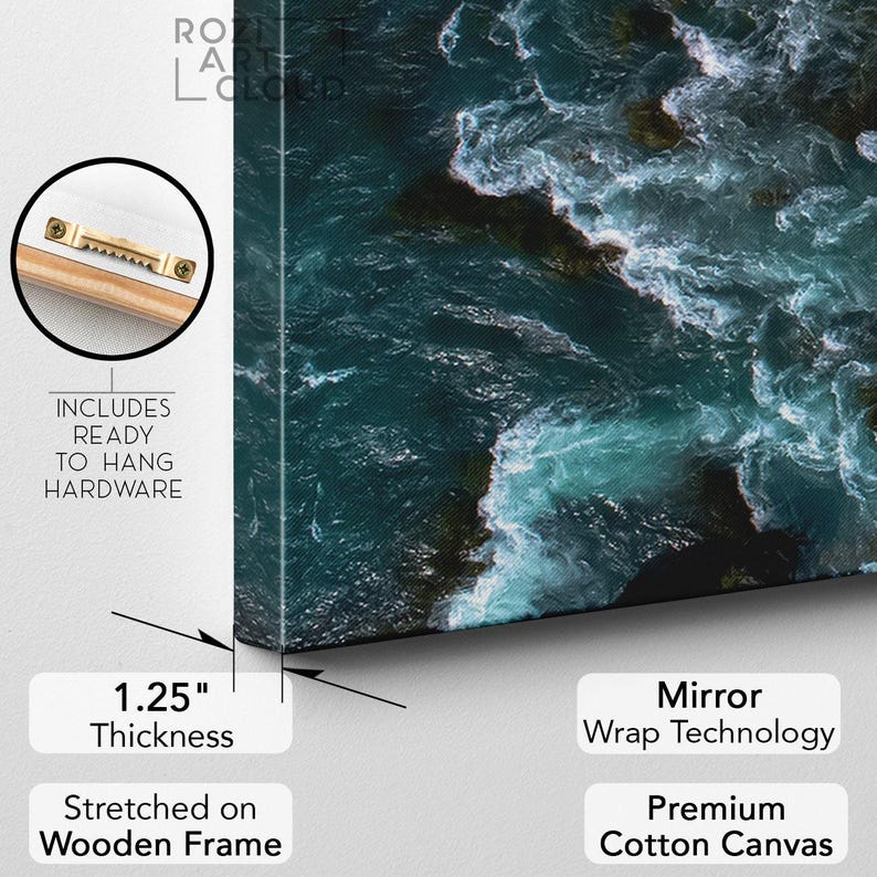 Turquoise ocean wave wall art prints, blue ocean canvas, modern artwork prints, framed extra large wall art for living room