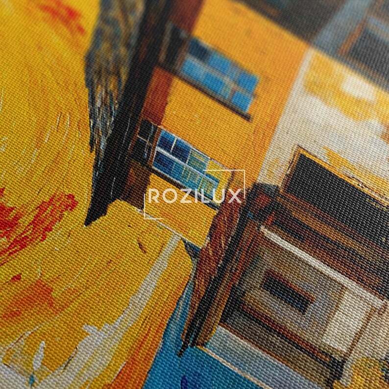 Van Gogh Style House Canvas Print, Vibrant Impasto Landscape Wall Art, Textured Oil Painting Print, Sunny Orange Home Decor