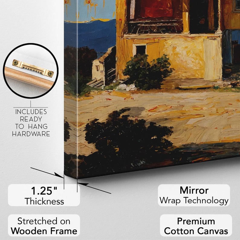 Vibrant Textured House Canvas Print | Impasto Style Landscape Wall Art | Colorful Sun Painting