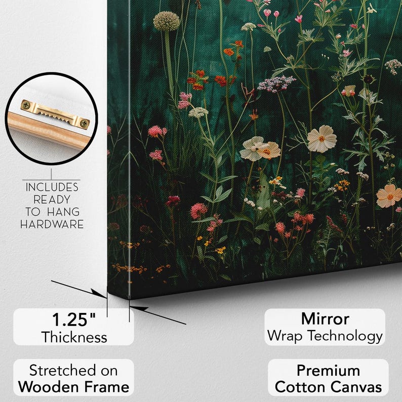 Wildflower Canvas Print, Modern Botanical Wall Art, Dark Green Floral Art Print for Home Decor, Framed Ready To Hang, Oil Painting Style