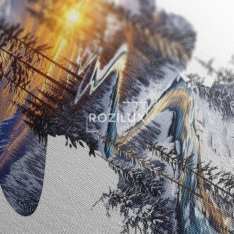 Winter Mountain Landscape Canvas Print | Man Silhouette with Cowboy Hat | Rustic Nature Wall Art | Gift For Him